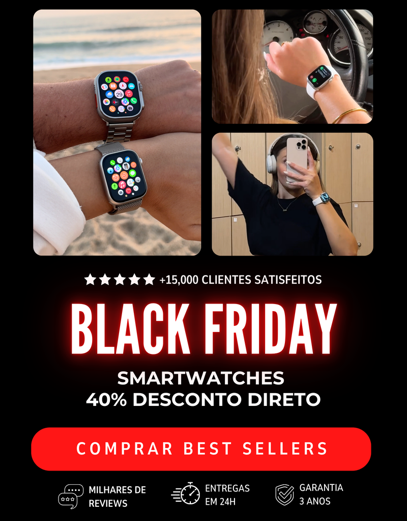 Mantém-te conectado com estilo, monitoriza a tua saúde e recebe notificações em tempo real. Os nossos relógios inteligentes oferecem a melhor relação qualidade/preço do mercado.