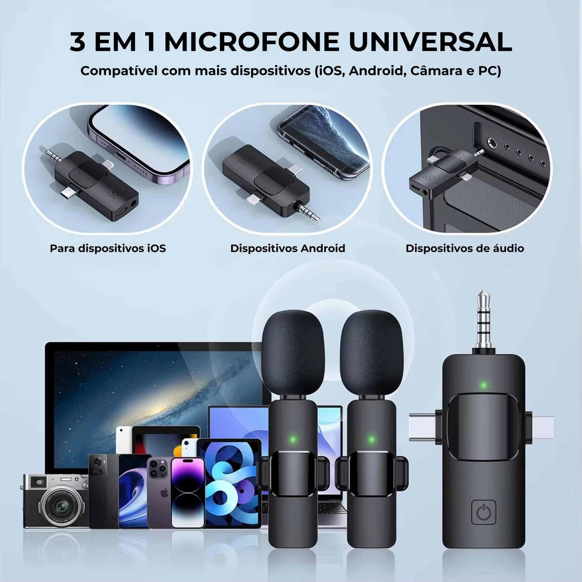 👉 O Microfone Wireless Digital Avenue 3 em 1 é a escolha certa para quem quer som profissional, simples e compatível com todos os dispositivos. Ideal para criar conteúdos com qualidade, em qualquer lugar.