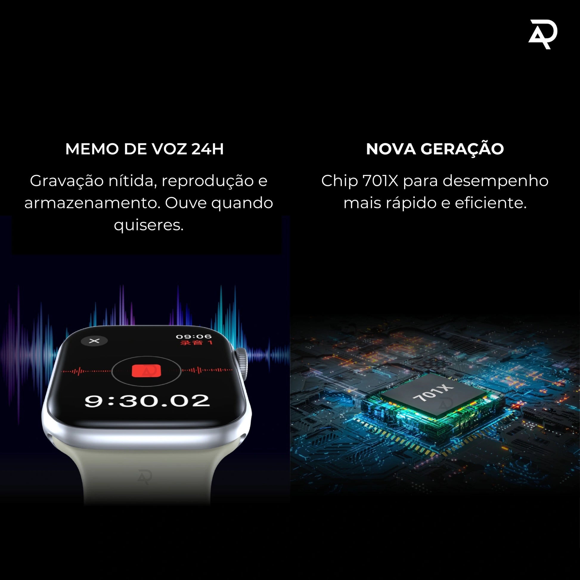 • Funcionalidades intuitivas: Faz e atende chamadas diretamente no smartwatch e recebe notificações inteligentes em tempo real;