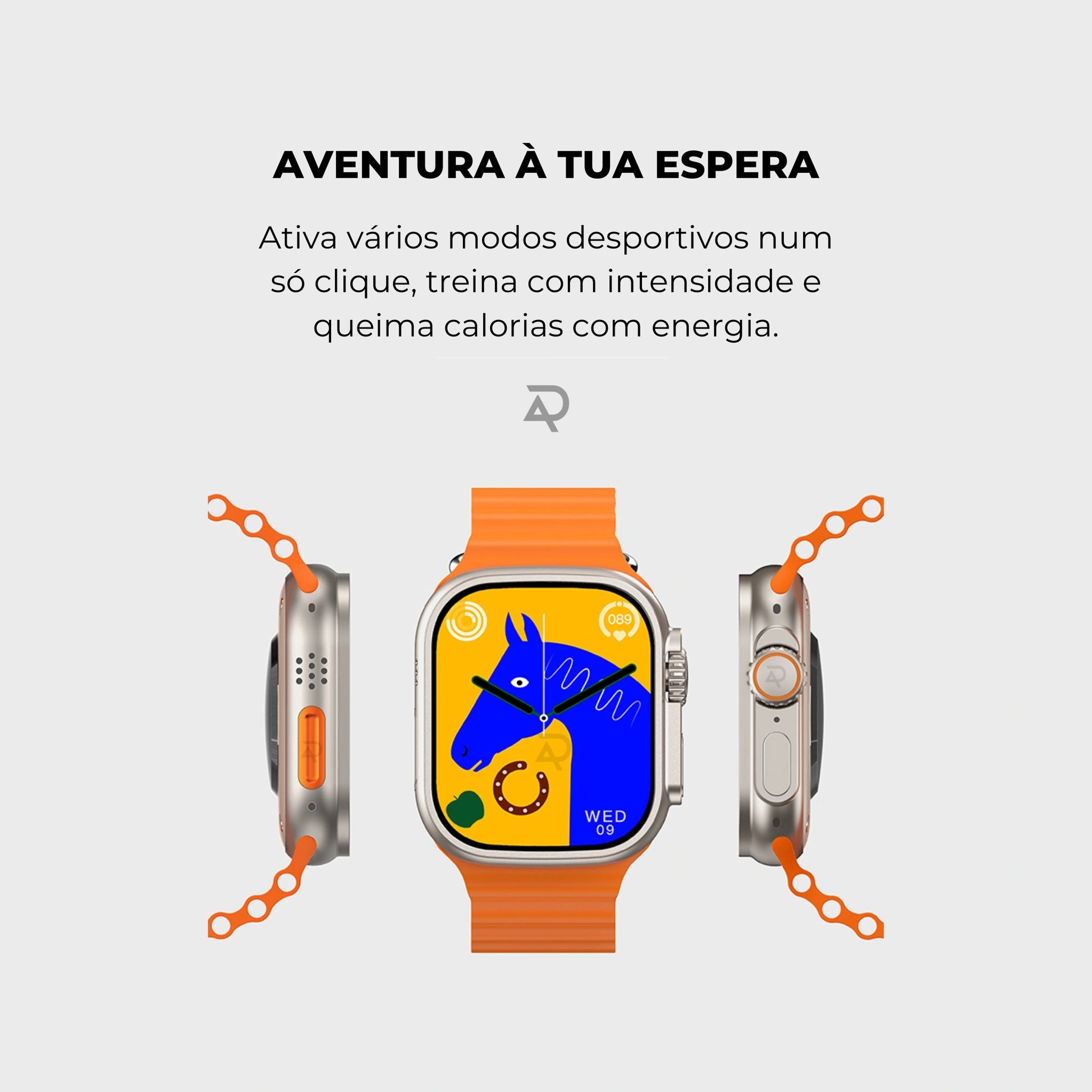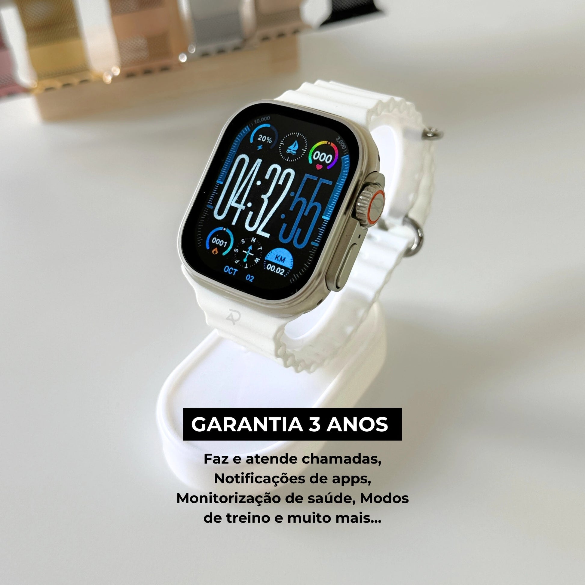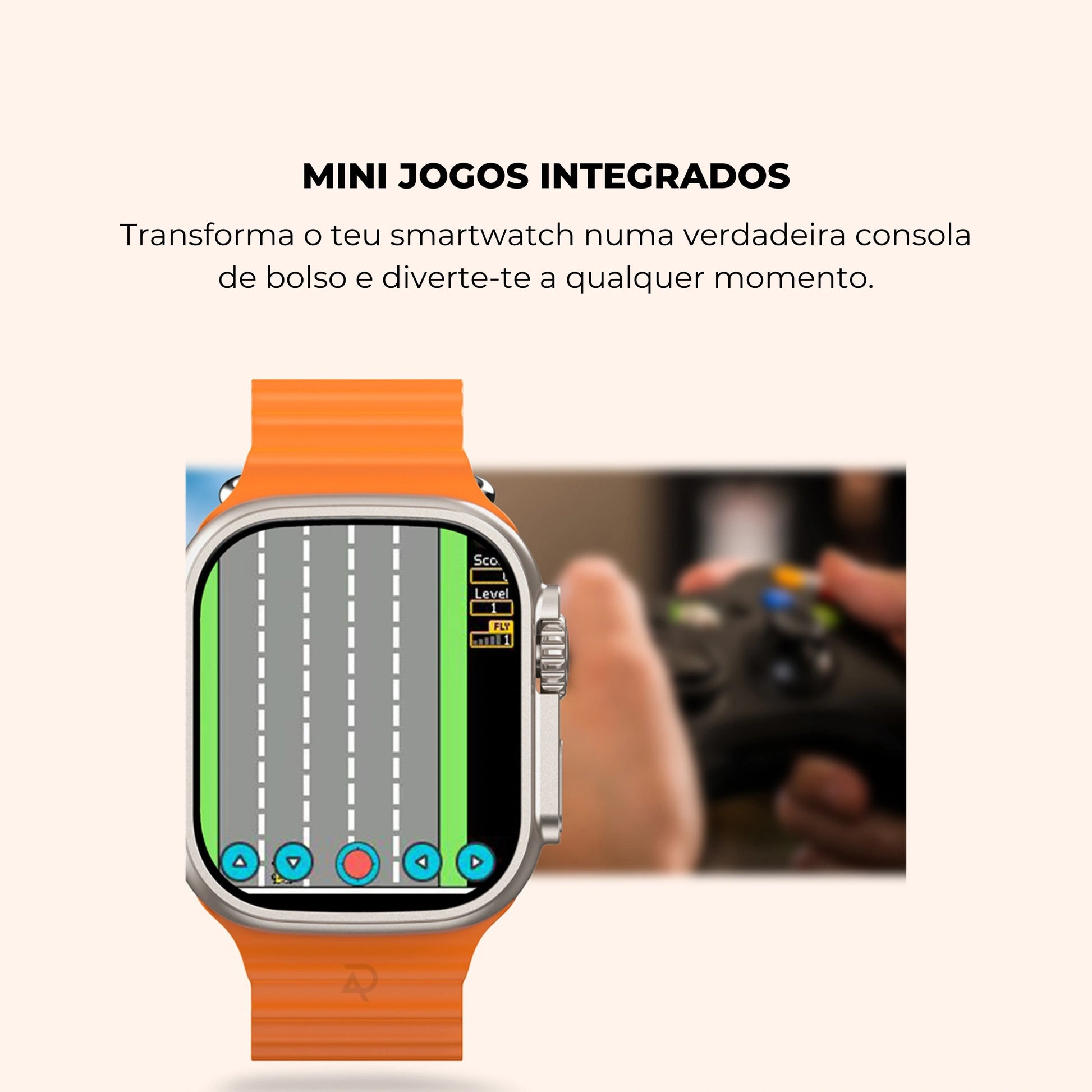 Funções do smartwatch: Faz e atende chamadas, Notificações, NFC, Passos, Calorias, Modos de Treino, Batimentos Cardíacos, Oxigénio no Sangue, Monitorização do Sono, Assistente de Voz, Controlo de Música e Câmara, Notificações de Mensagens, Facebook, WhatsApp, Twitter, etc.
